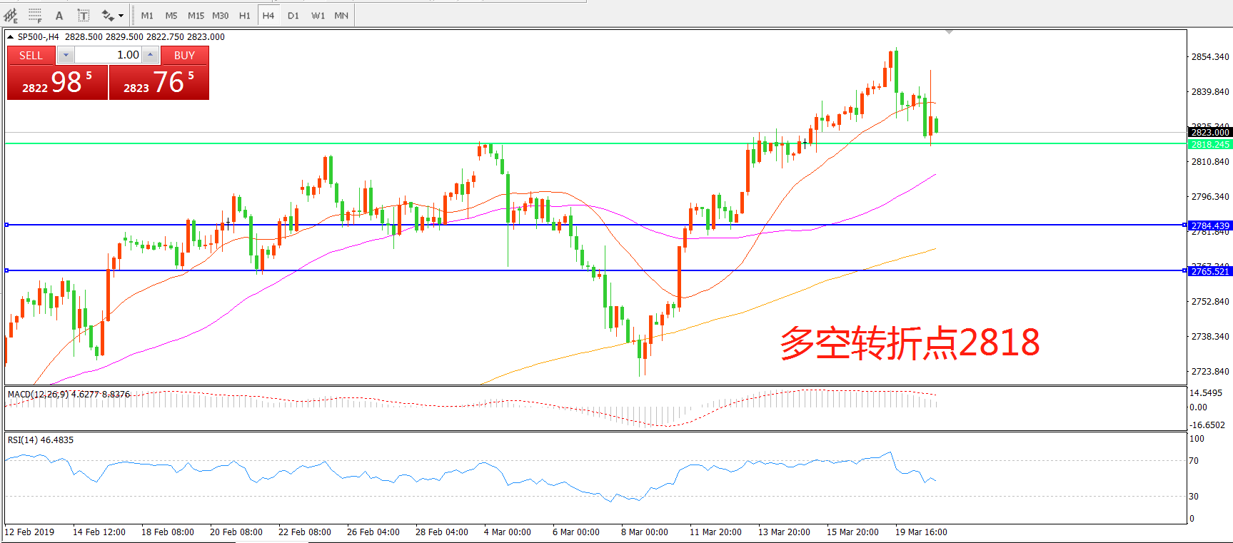 交易策略:在2818之下看跌,目标2764    2750