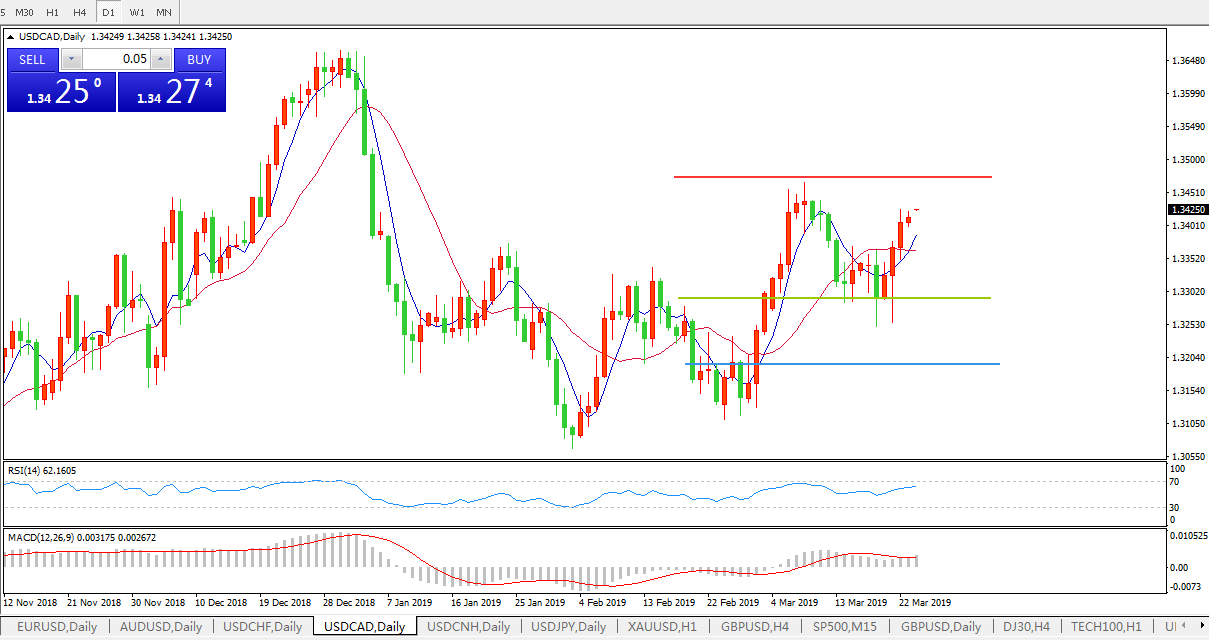 加拿大1月零售销售不及预期,但2月CPI好于预期及前值,美元兑加元短线走高近30点,刷新自3月12日来高,随后再度回吐涨势。美元兑加元本周表现强劲,在五个交易日中录得四个交易日收涨,这一定程度上是受到油技术性回调的影响,油价的走低往往对大宗商品价格敏感的加元造成直接影响。