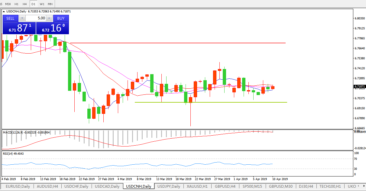 美元兑人民币USDCNH 日线图: