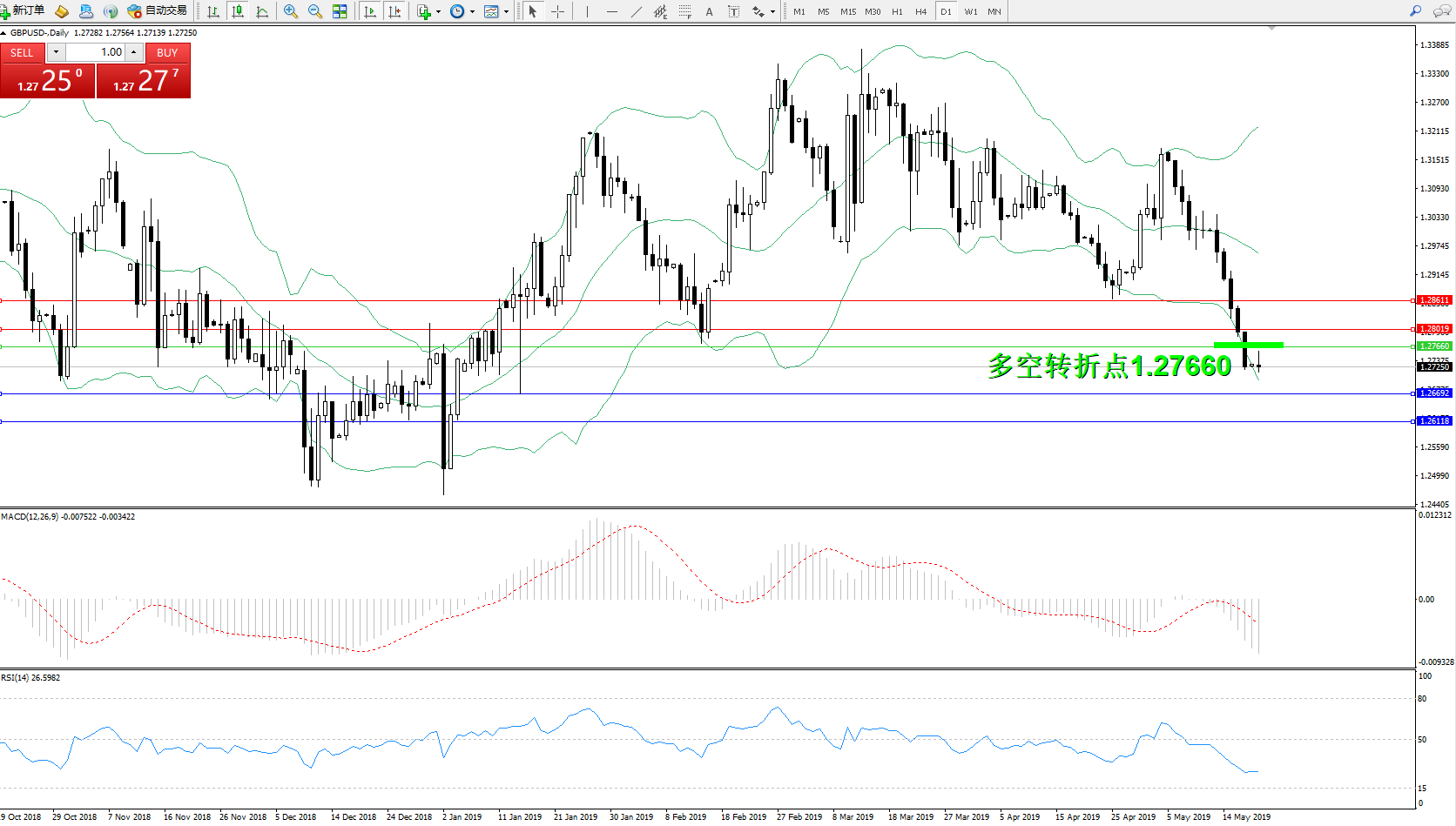 交易策略:1.27660下方看跌,目标1.26692、1.26118