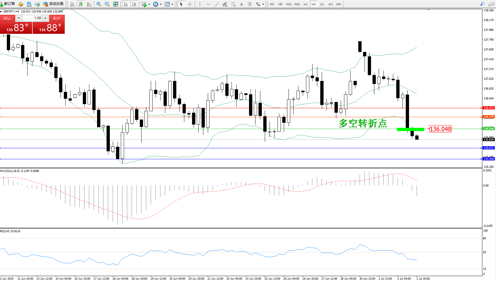 技术点评:维持布林带通道上行后遇阻回撤,高位弱势下行持续,延续布林带下轨运行中,MACD指标跌破0轴后继续下探,RSI指标进入空头去平缓下移;