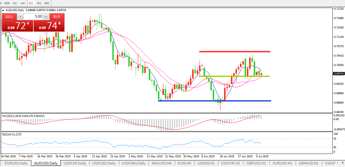 交易策略:0.6960上方看涨,目标0.7020、0.7100
