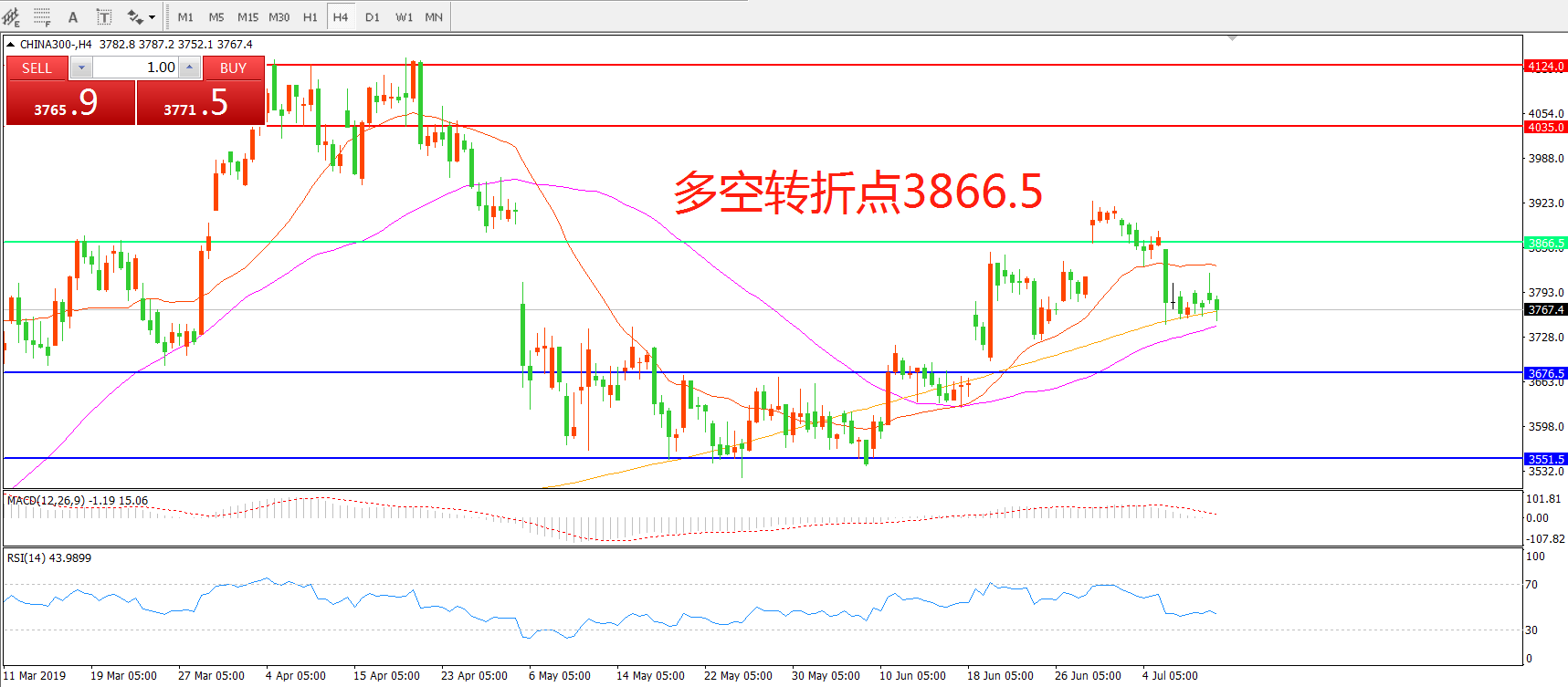 沪深300指数CHINA300 4小时图