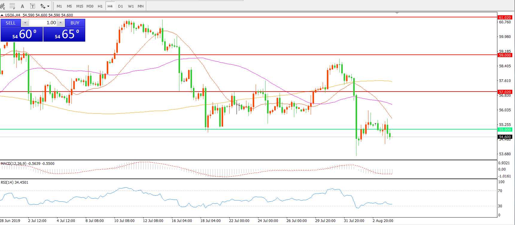 美国原油USOIL 4小时图