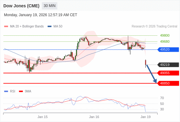 交易策略: 在 49520 之下,看跌,目标价位为 49055 ,然后为 48850 。