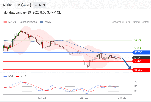 在 53730 之下,看跌,目标价位为 53420 ,然后为 53130 。