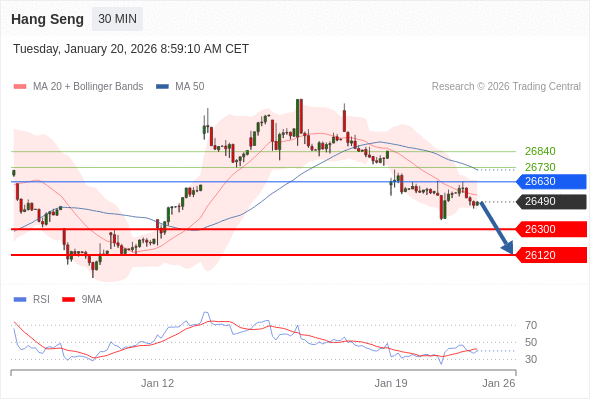 在 26630 之下,看跌,目标价位为 26300 ,然后为 26120 。