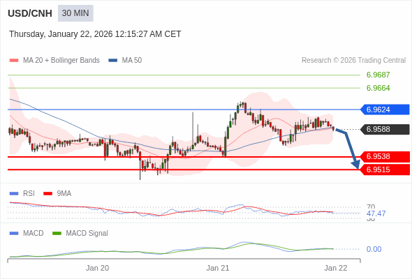 美元/人民币 当日内 : 看跌,当 6.9624 为阻力位。