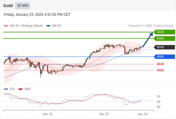 交易策略: 在 4885 之上,看涨,目标价位为 5000 ,然后为 5040 。