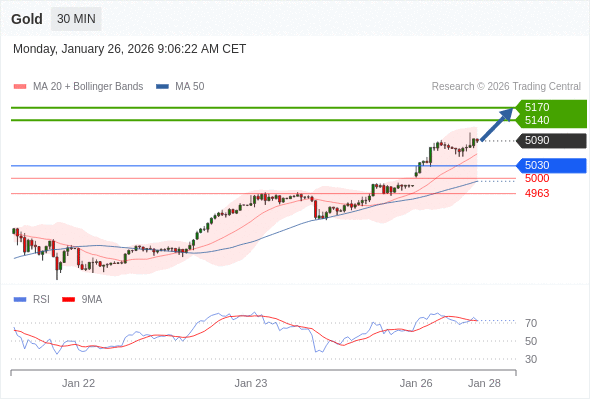 在 5030 之上,看涨,目标价位为 5140 ,然后为 5170 。