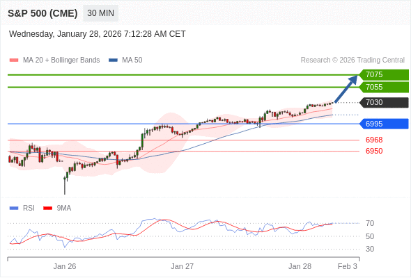 在 6995 之上,看涨,目标价位为 7055 ,然后为 7075 。