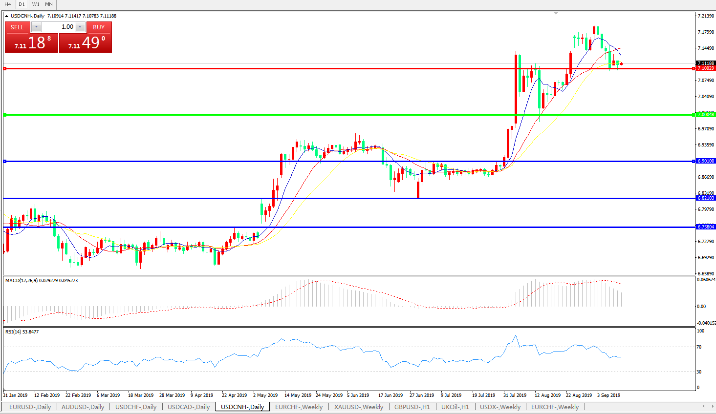 交易策略: 在7.0000之上,看涨,目标价位为7.1000,然后为7.2000。