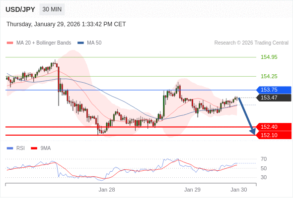 在 153.55 之下,看跌,目标价位为 152.40 ,然后为 152.10 。
