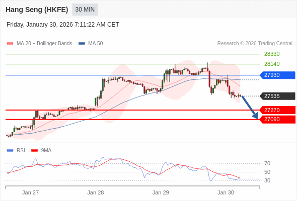 在 27930 之下,看跌,目标价位为 27270 ,然后为 27090 。