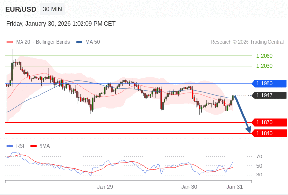 交易策略: 在 1.1980 之下,看跌,目标价位为 1.1870 ,然后为 1.1840 。