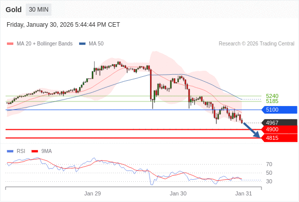 交易策略: 在 5100 之下,看跌,目标价位为 4900 ,然后为 4815 。