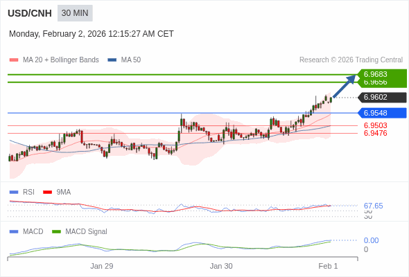 替代方案: 在6.9548以下,期待6.9503和6.9476。
