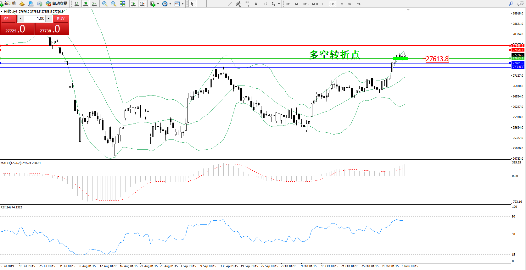 恒指HK50 ——4小时K线图显示: