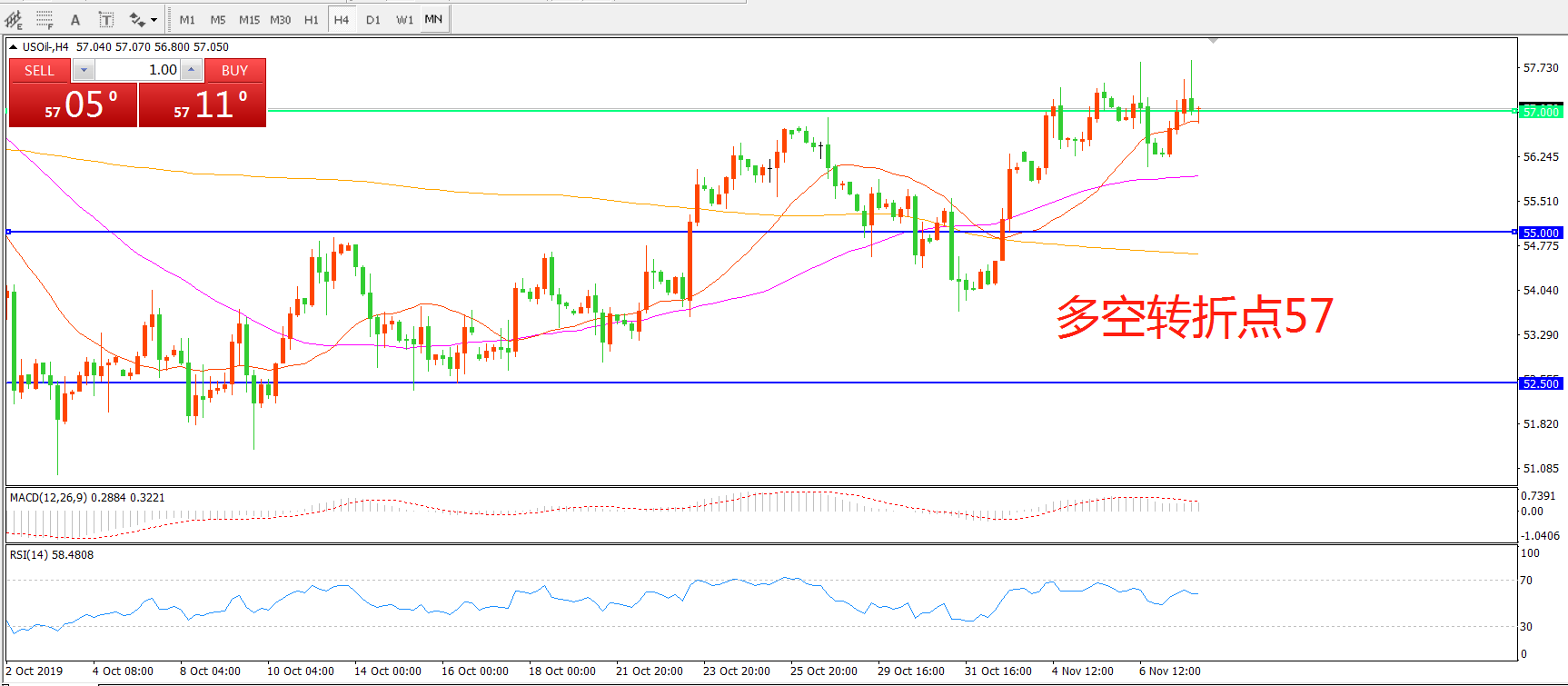 交易策略:在57.00之上看涨,目标58.50  62.00