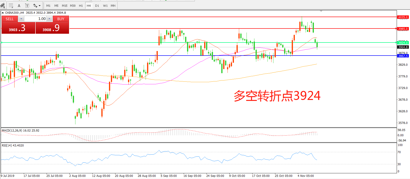 沪深300指数CHINA300 4小时图