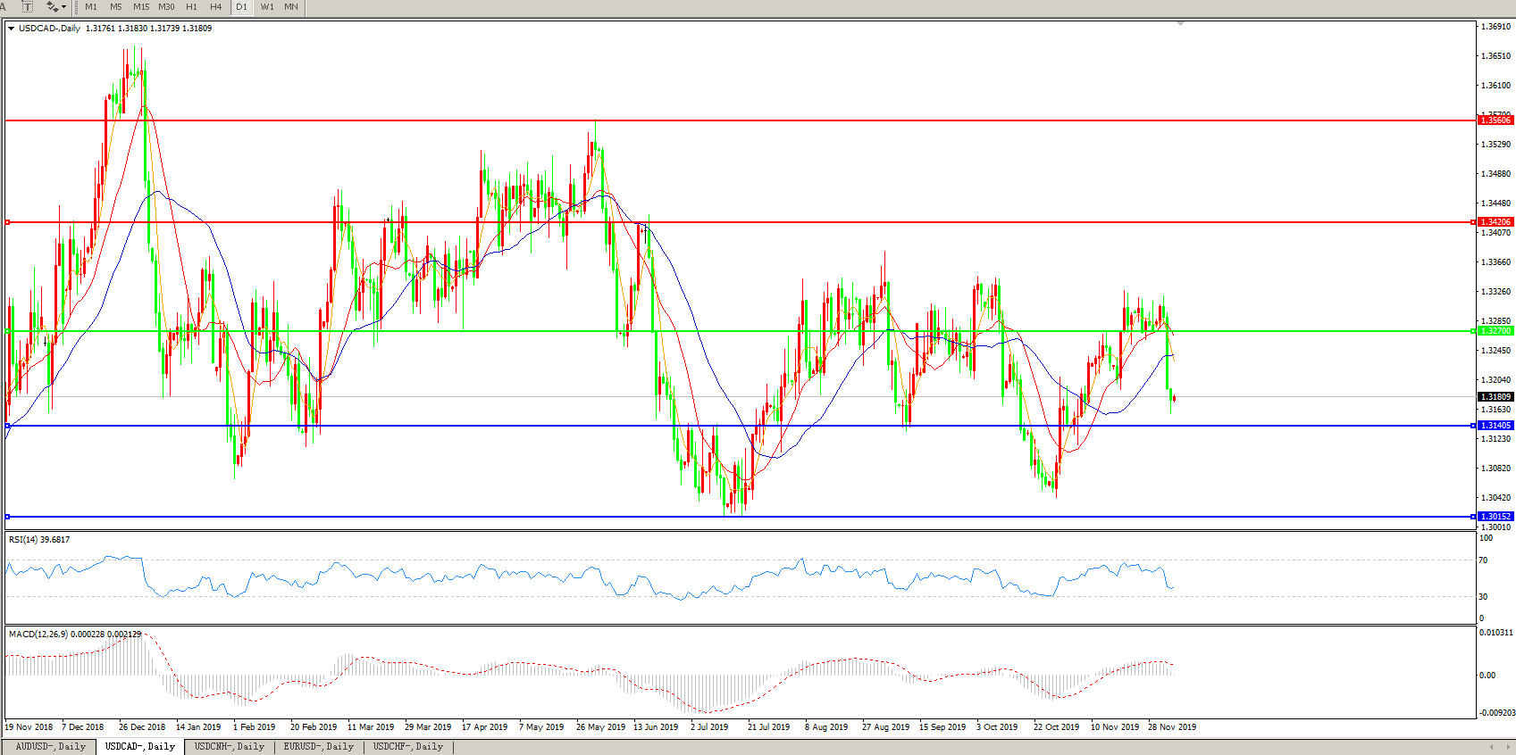 技术面简析:日线图均线开始拐头下行,汇价延续跌势继续下行,MACD下行逼近0轴且量能快速收缩,RSI震荡走低,短期汇价需关注1.3140附近支撑是否有效,预计汇价存进一步下行空间。