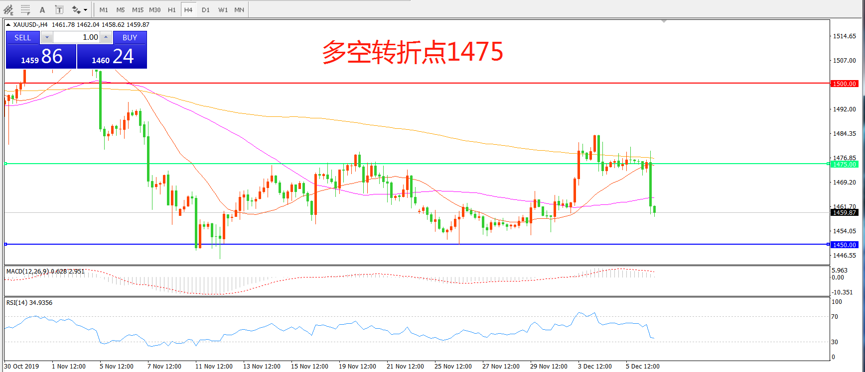 交易策略:在1475.00之下看跌,目标1450.00 1420.00