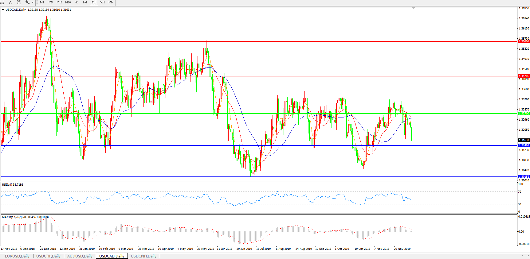 美元兑加元USDCAD    日线图: