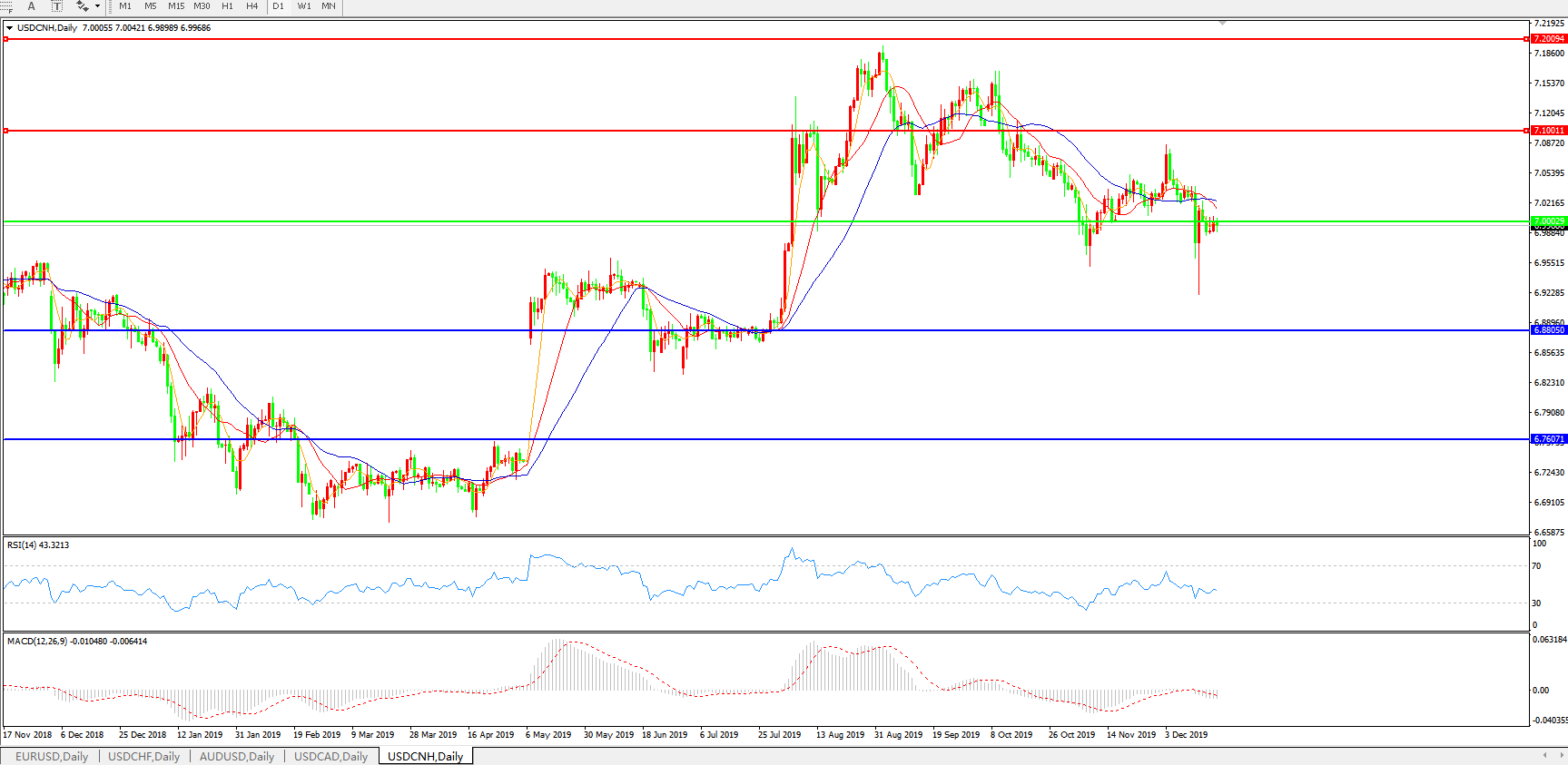 美元兑人民币USDCNH 日线图: