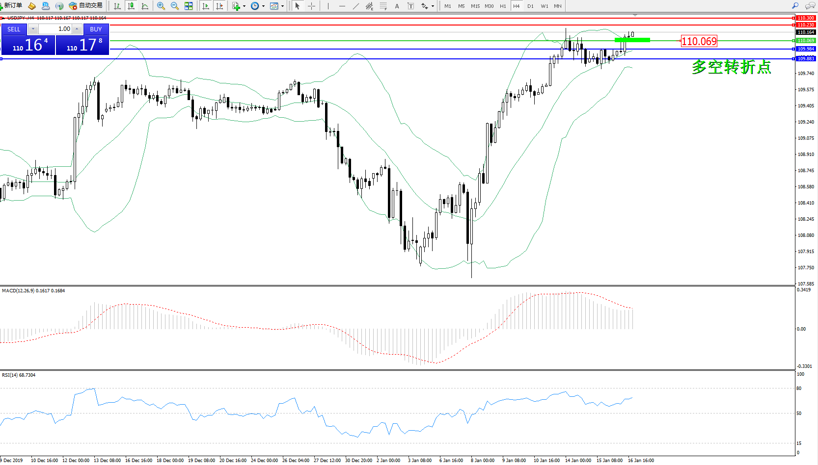 交易策略:110.069上方看涨,目标110.230110.300