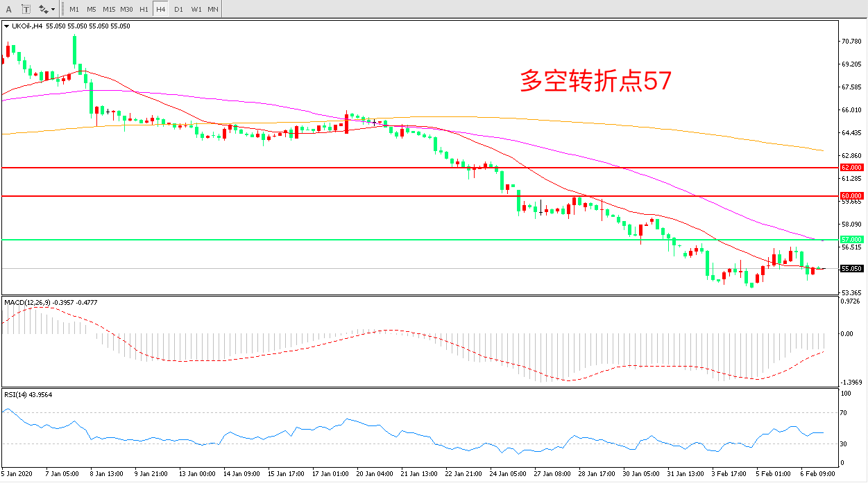 交易策略:在57.00之下看跌,目标55.00 52.00