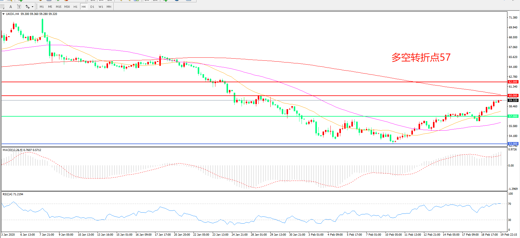 多空转折点:57.00