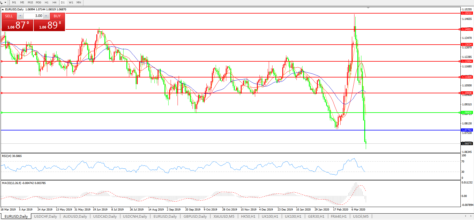 欧元兑美元EURUSD   日线图: