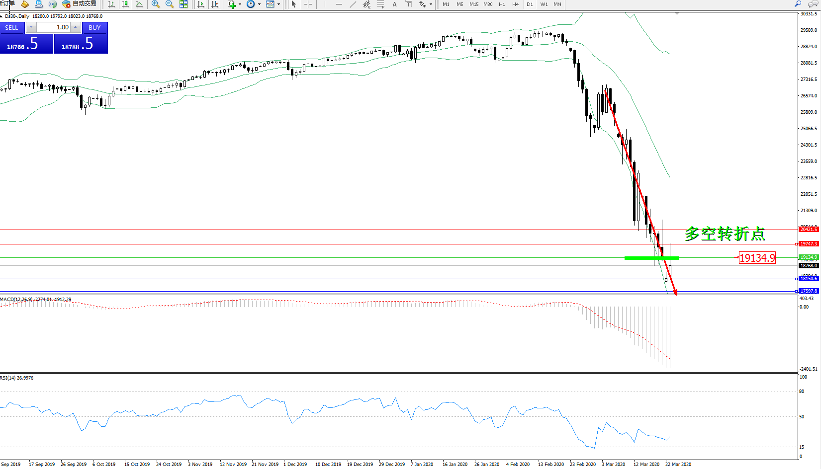 技术点评:空头动力延续布林带指标下轨不断下探中,且下行趋势未有减弱迹象,布林带指标呈有张口走势迹象,MACD指标处于空头区域不断震荡下移中,RSI指标处于空头区域低位窄幅震荡平移中;