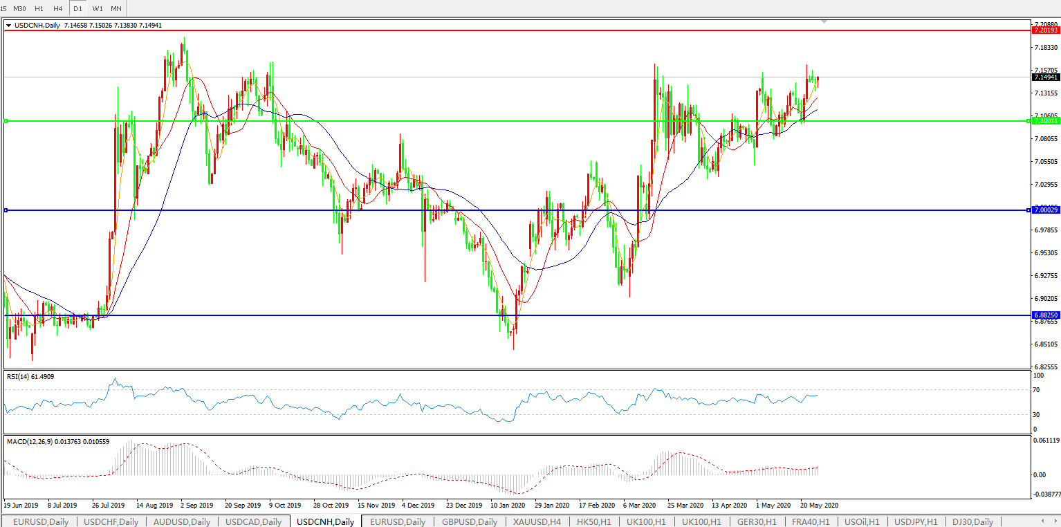 美元兑人民币USDCNH    日线图: