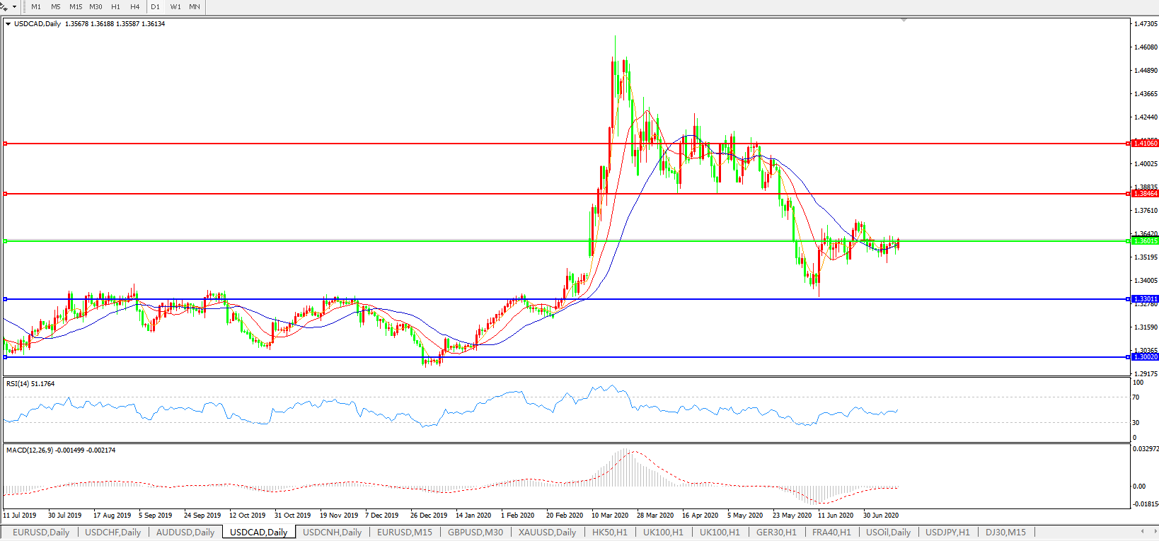 美元兑加元USDCAD    日线图:
