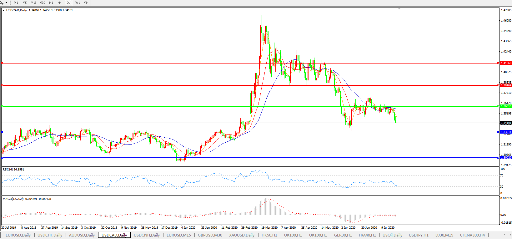 美元兑加元USDCAD    日线图: