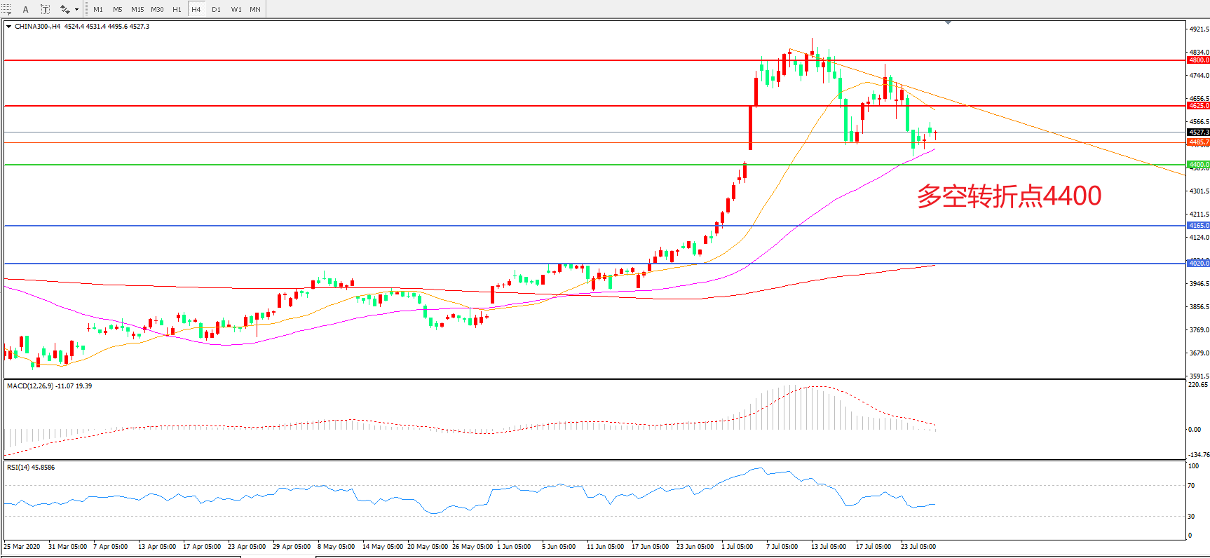 多空转折点:4625.00