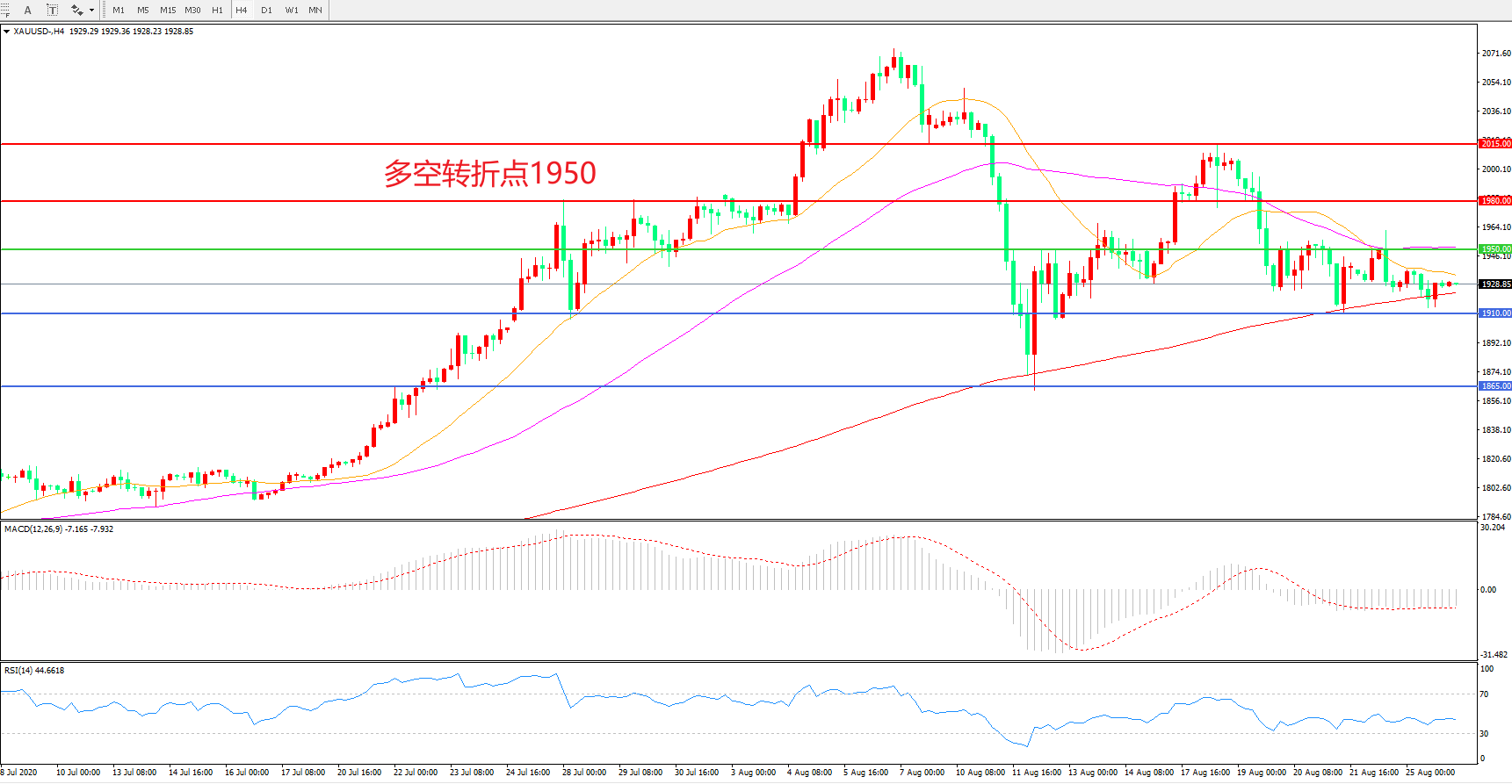 交易策略:在1950.00之下看跌,目标1910.00 1865.00