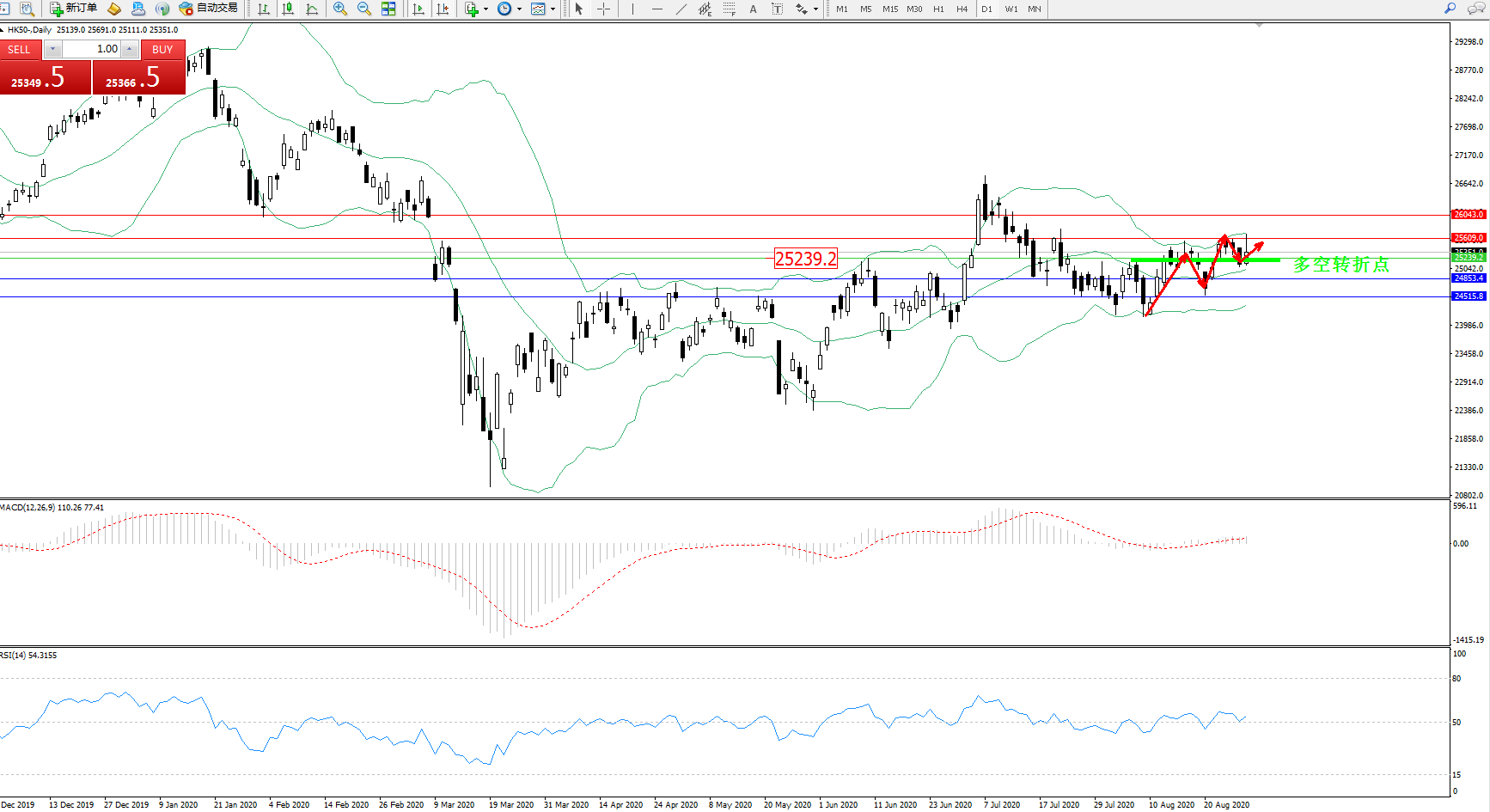 香港恒生指数8月28日(周五)收盘上涨140.91点,涨幅0.56%,报25422.06点;港股三大指数收盘涨跌不一,恒指尾盘回落明显,国指更是由涨转跌。香港本地股、濠赌股等权重尾盘皆有回落,但仍保持上涨行情,支撑恒指收涨。大型科技股普遍下跌,腾讯跌超3%为最差蓝筹股,京东、美团均跌超2%,阿里跌逾1%,小米涨超5%。今日南下资金净流入51.96亿港元,大市成交额为1652亿港元。中国证监会准予2只深港ETF互通产品注册,产品由境内基金管理人在境内设立,采取合格境内机构投资者(QDII)模式,将不低于90%的基金净资产投资于香港单只目标ETF,跟踪恒生中国企业指数、标普新中国行业(A股上限)指数市场表现,基金份额在深圳证券交易所上市交易。