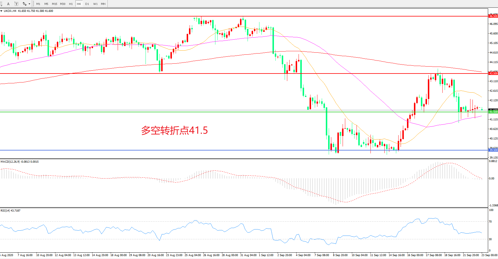 交易策略: 在41.50之上看涨,目标43.50 46.50