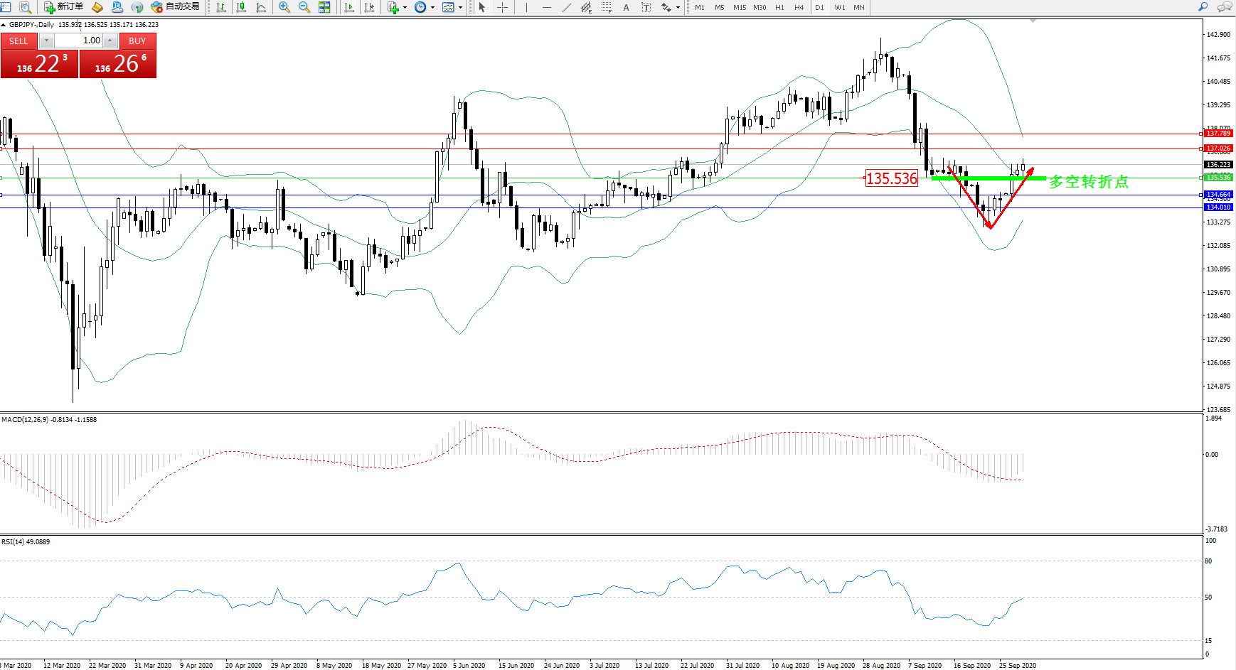 交易策略:135.536上方看涨,目标137.026、137.789