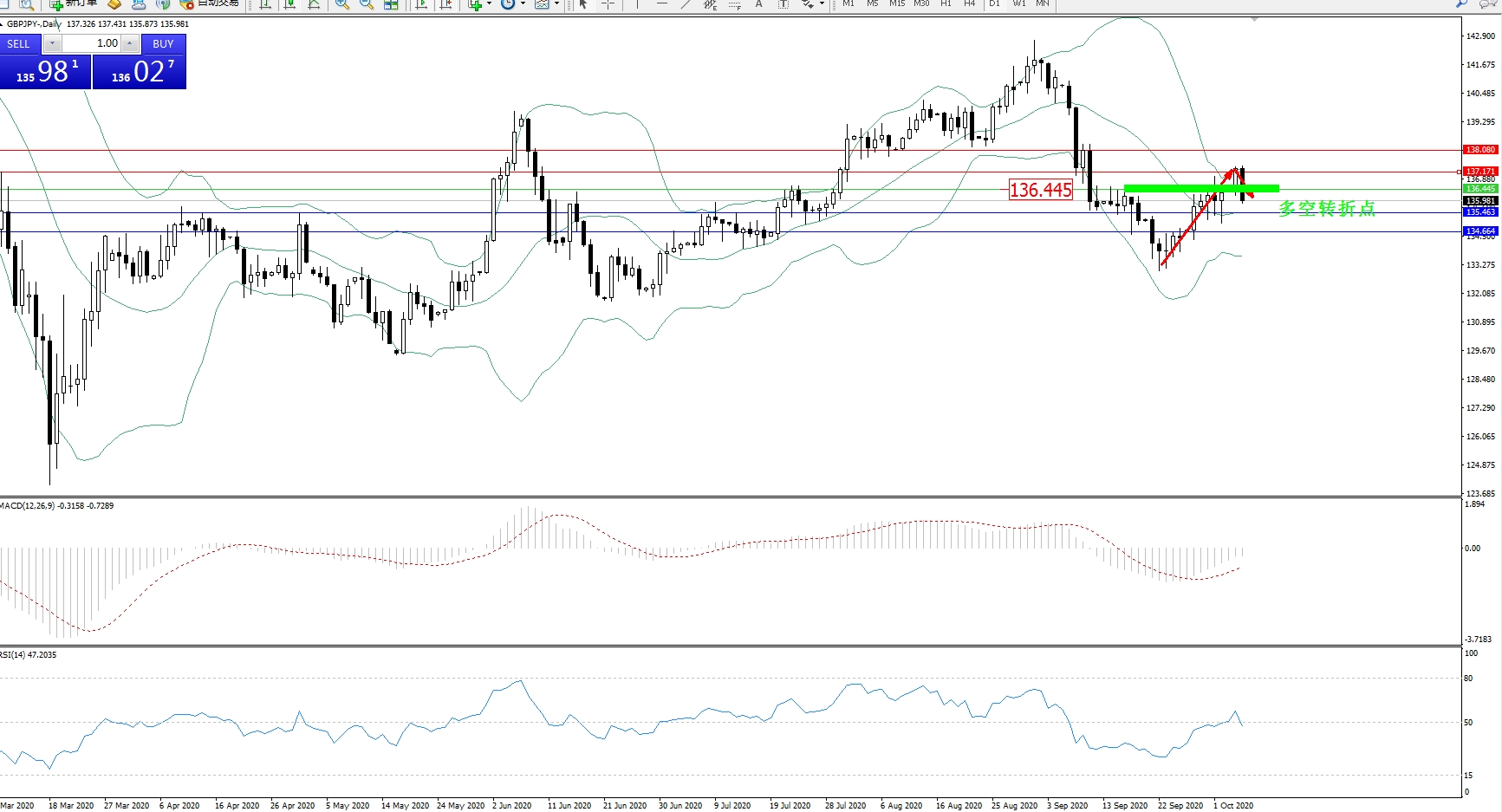 多空转折点:136.445
