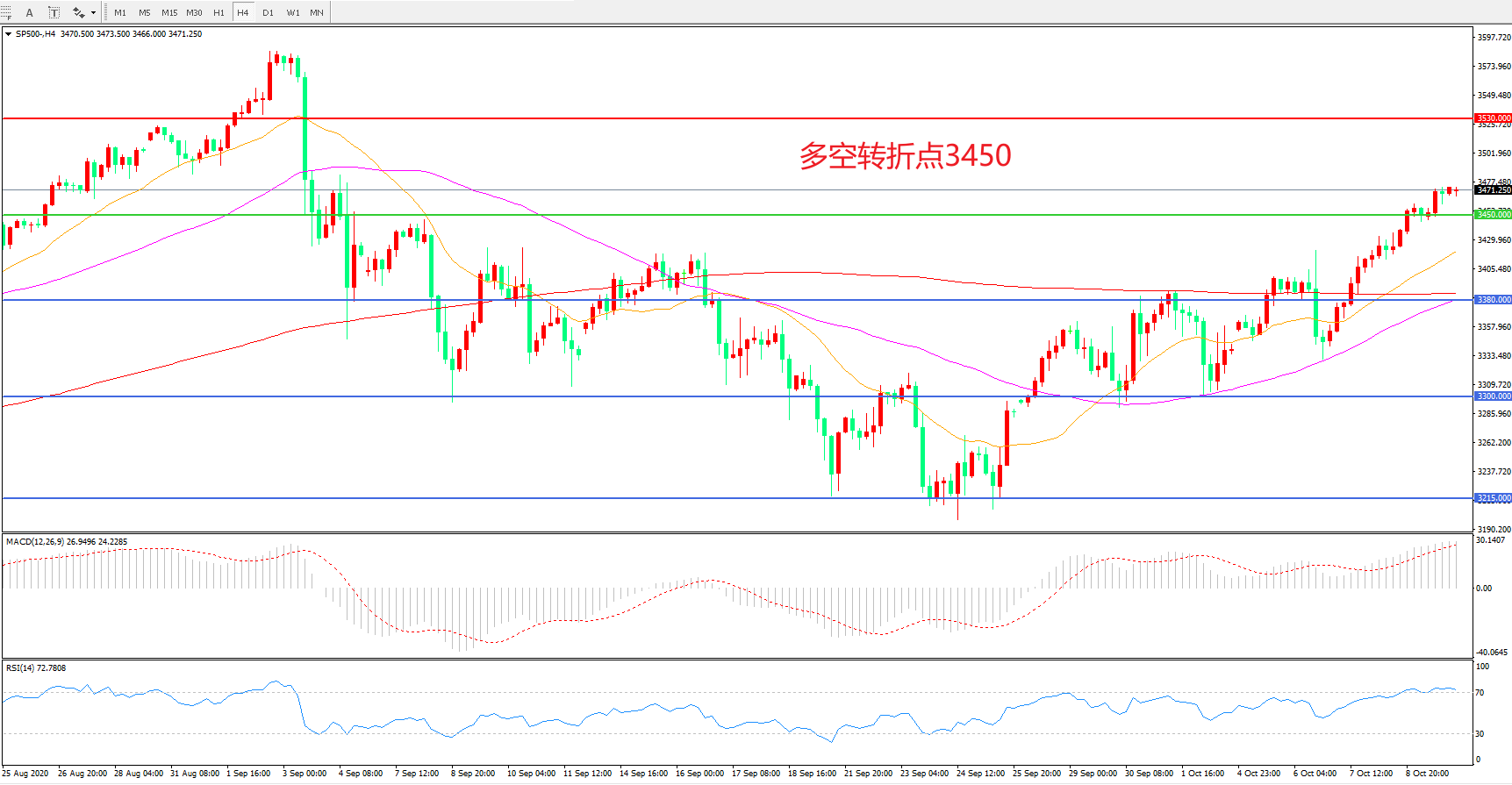 多空转折点:3450.00