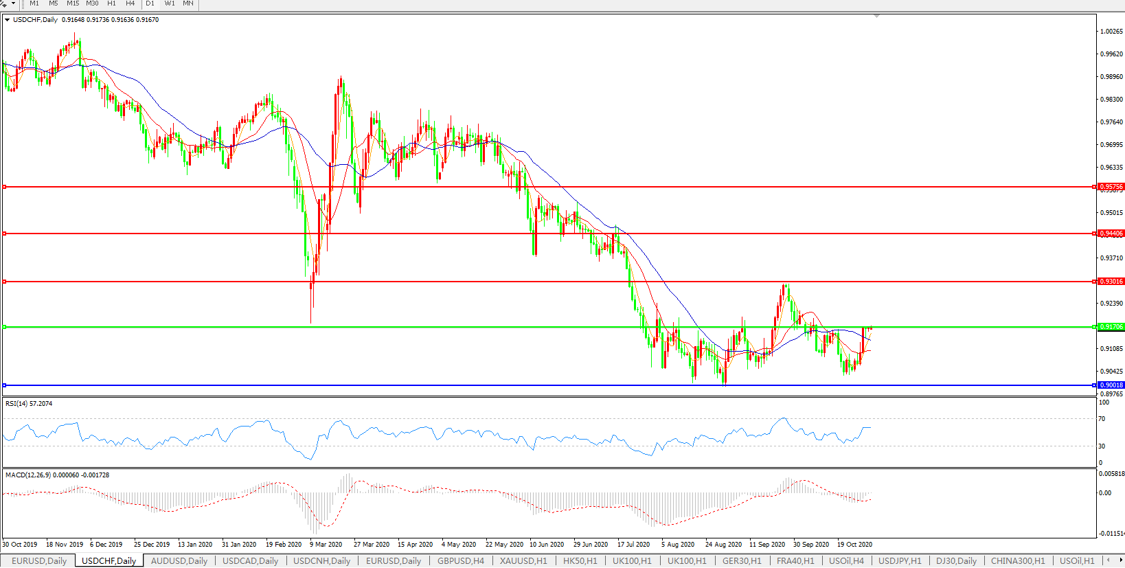 美元兑瑞郎USDCHF 日线图:
