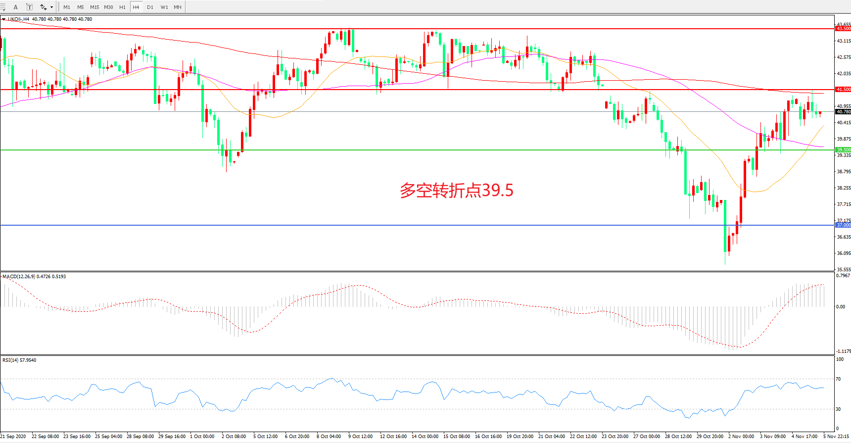 交易策略:  在39.50  之上看涨,目标41.50       43.50
