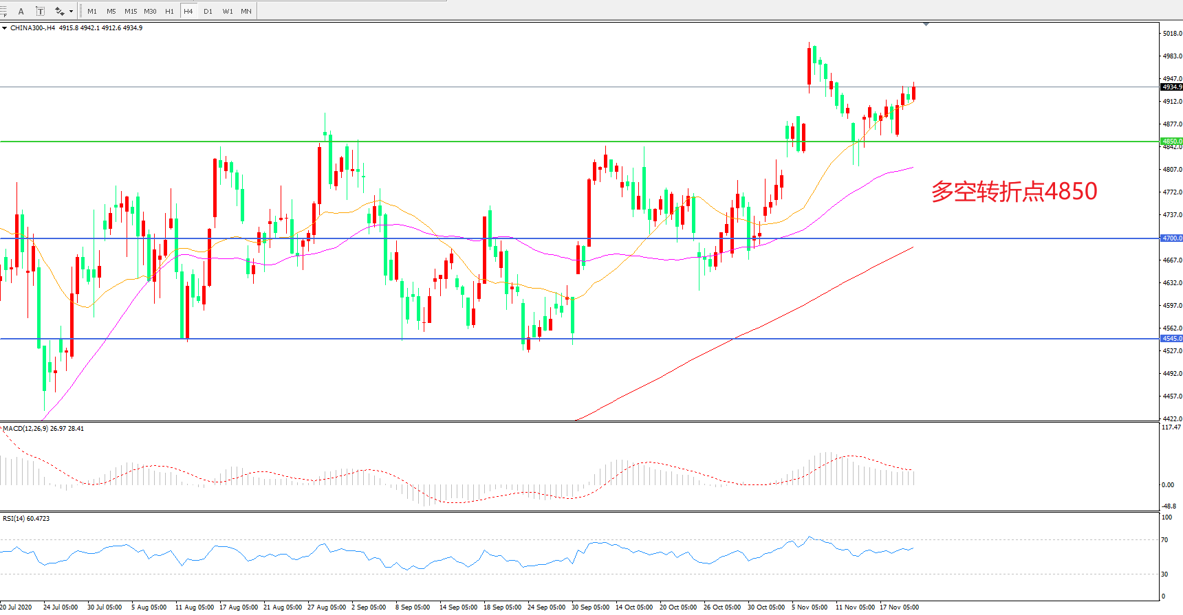 多空转折点:4850.00