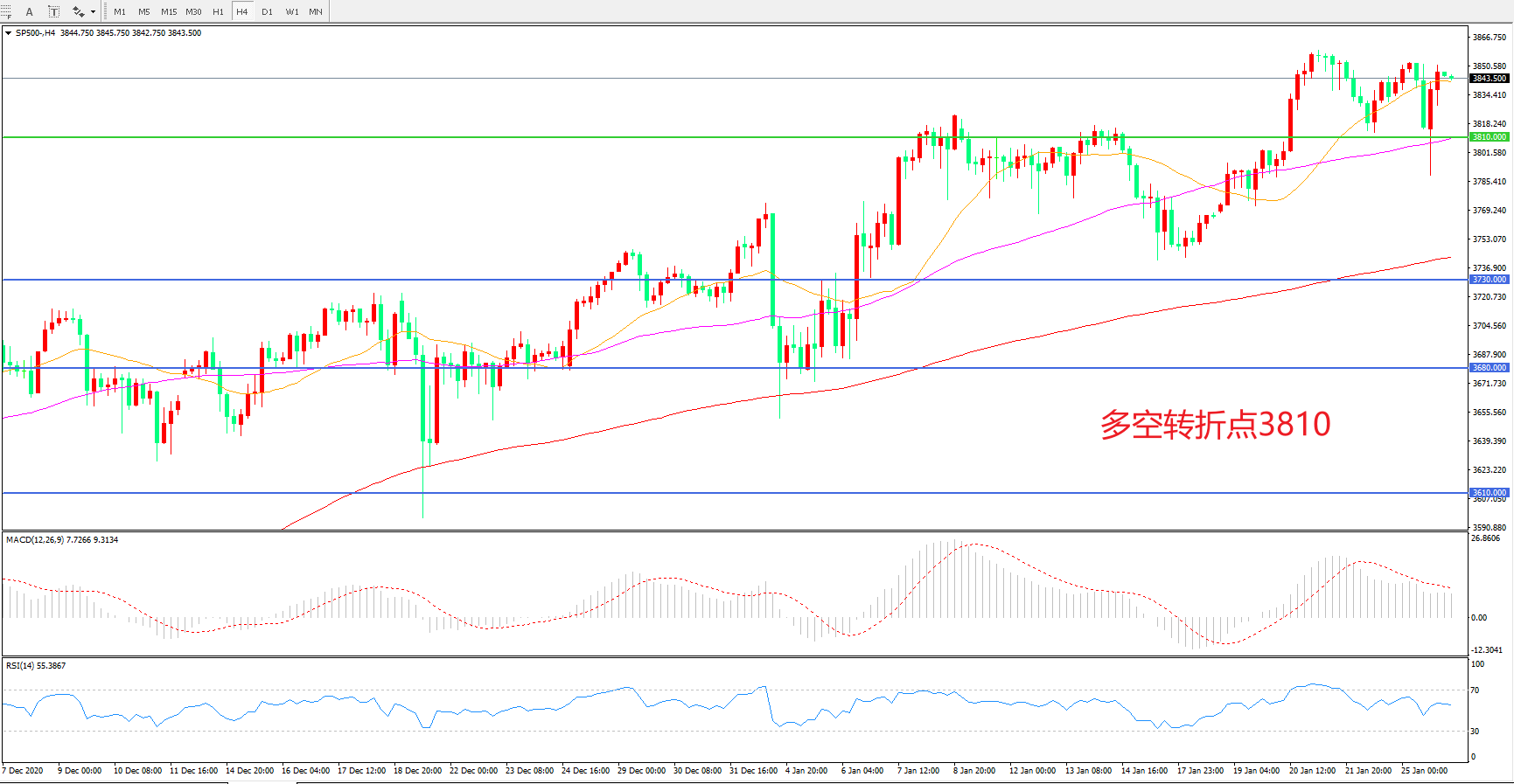 多空转折点:3810.00