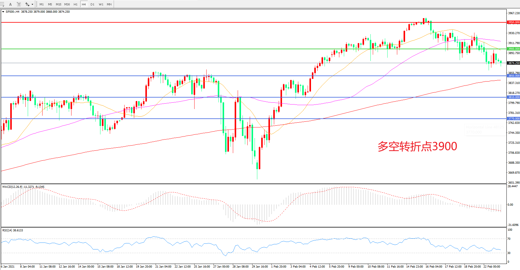 多空转折点:3900.00