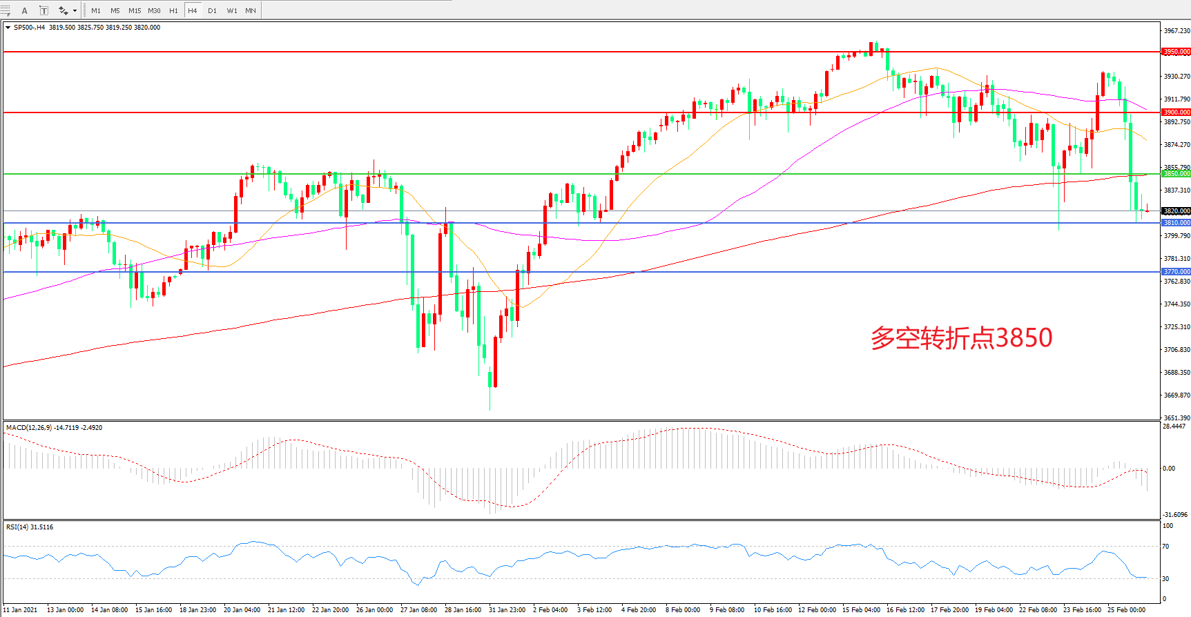 多空转折点:3850.00
