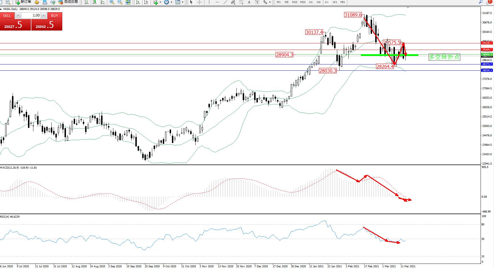 香港恒生指数3月15日(周一)收盘上涨94.04点,涨幅0.33%,报28833.76点;港股指数收盘涨跌不一,前期抱团科技股再度大跌,致恒生科技指数大幅收跌2.27%报8264点,大型科技股京东集团大跌6.17%,今日南下资金净流出15.04亿港元,大市成交额不足2千亿港元。南下资金今日净卖出港股46.78亿港元。其中净卖出前三个股为美团-W、腾讯控股、香港交易所,分别遭净卖出16.62亿港元、7.6亿港元、6.38亿港元。建设银行、融创中国、中国海洋石油净买入额位列前三,分别获净买入4.78亿港元、1.2亿港元、0.55亿港元。香港证券及期货事务监察委员会向15家经纪行发出限制通知书,禁止它们处理或处置32个交易帐户内的某些资产。这些资产与一宗怀疑社交媒体“唱高散货”骗局有关,当中涉及于2019年11月至2020年11月期间就一家在香港联合交易所有限公司上市的公司的股份进行的市场操纵活动。15家经纪行包括富途证券国际(香港)有限公司、中国银河国际证券(香港)有限公司在列。香港金管局总裁余伟文今日对外表示, 金管局正与中国人民银行数字货币研究所研究使用数字人民币进行跨境支付的技术测试,并做相应的技术准备。同时,下半年有望推出债券南向通、理财通等。